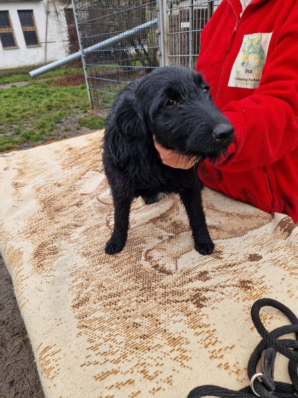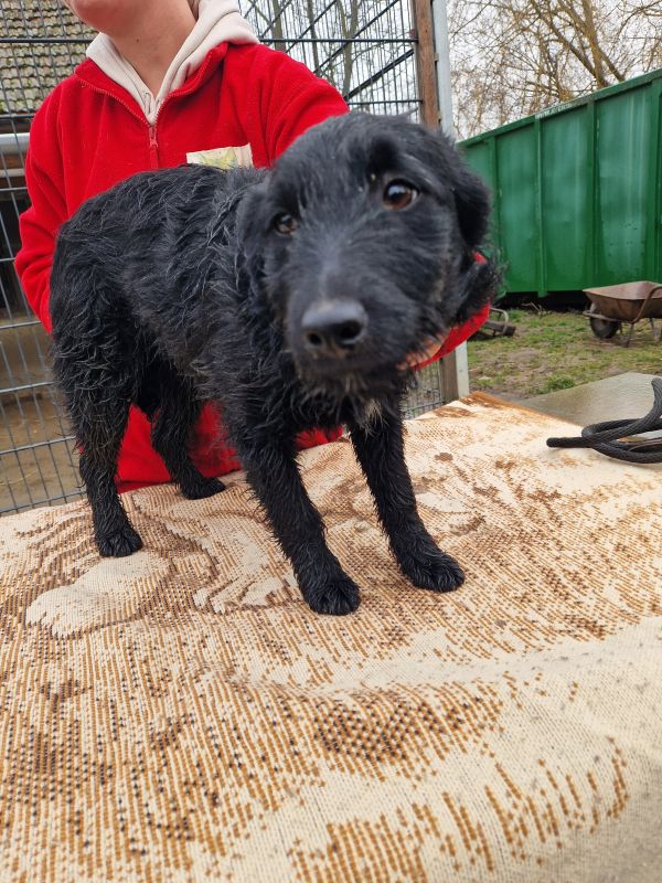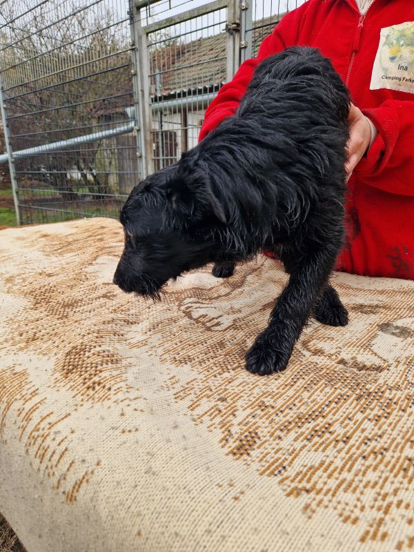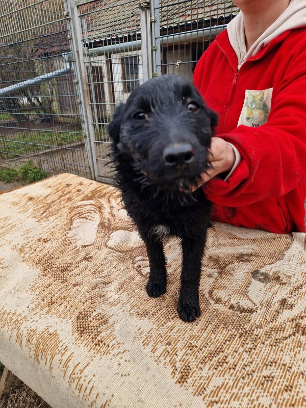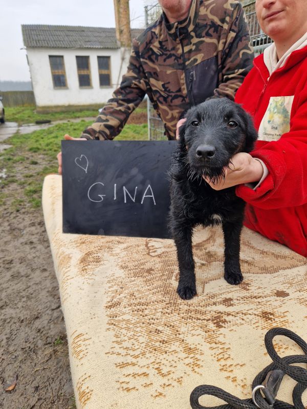 Gina wurde im August 2025 im Tierheim geboren. Ihre Mutter, eine Mudi-Mix-Hündin, wurde trächtig gefunden und in Sicherheit gebracht. Kurz darauf kamen Gina und ihre drei Geschwister dort zur Welt. Gina ist schwarz und hat einen kleinen weißen Fleck auf der Brust.